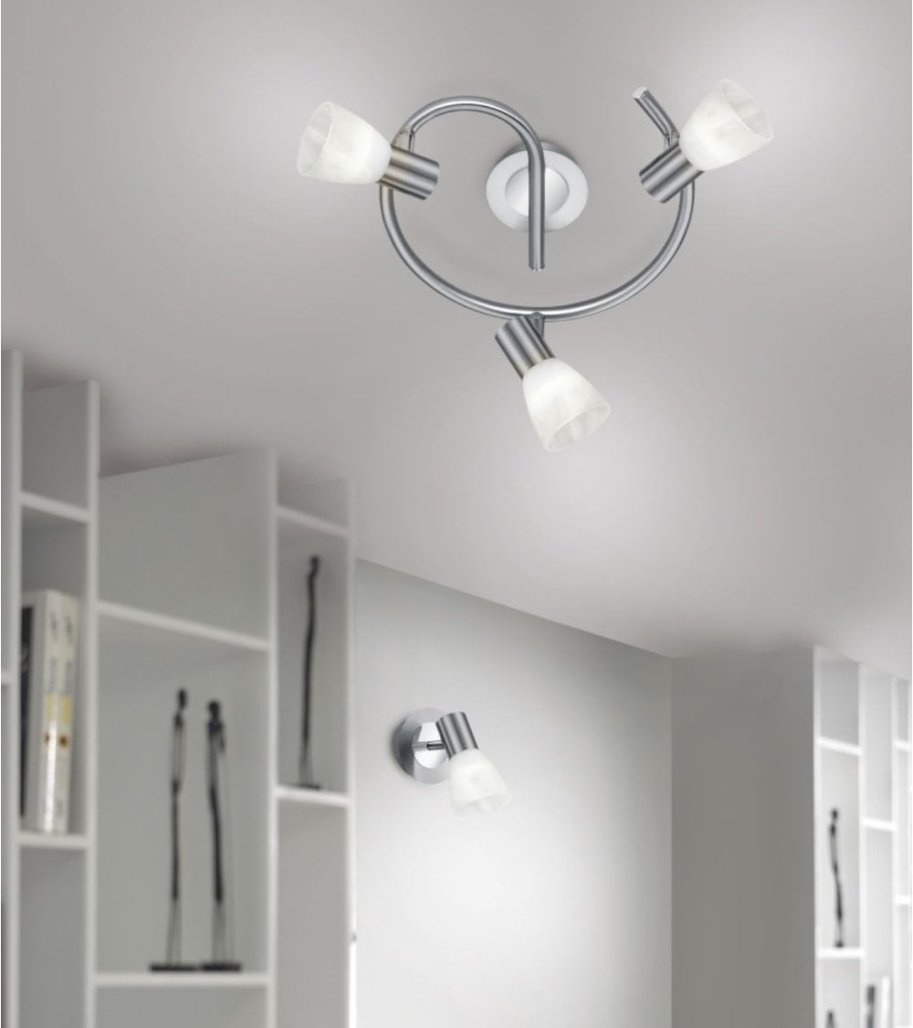 Ajustable y versátil, este foco permite dirigir la luz hacia áreas específicas, facilitando tanto la iluminación funcional como la decorativa. Su pantalla de vidrio esmerilado suaviza la luz para evitar deslumbramientos y generar un ambiente acogedor.
