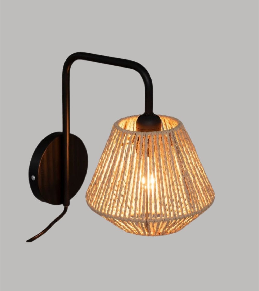 La Lámpara de Pared Natural Jily es una elección perfecta para los amantes del estilo Boho. Con medidas de 30 x 26 x 19 cm, esta lámpara se alimenta de la red y tiene un casquillo E27. Aunque la bombilla no está incluida, su diseño único de cuerda natural la convierte en una pieza de decoración imprescindible para cualquier hogar.