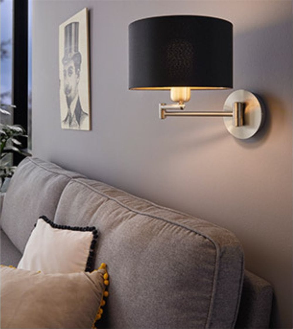 Se trata de una pieza que consta de una base fabricada en acero cromado y pantalla fabricada en tela. Gracias a su brazo extensible, la podrás adaptar a la perfección, más cerca o lejos de la pared, aumentando su funcionalidad y tu comodidad.