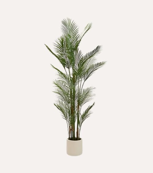 Esta palma decorativa Merlo de plástico con maceta de cerámica, de 187 cm de altura y porte esbelto, es perfecta para salones, entradas, pasillos,...