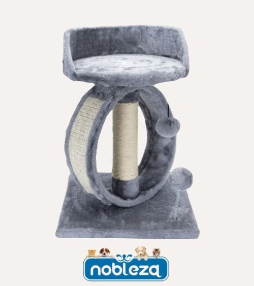 El Árbol Rascador para Gatos Circle Gris ofrece un área de descanso acolchada en la parte superior, ideal para el descanso y la observación de tu...