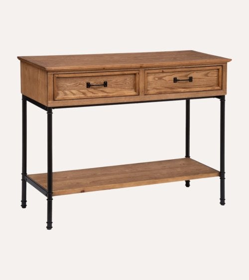 Descubre la Consola Charme Estilo Vintage con 2 Cajones. Sus medidas son 80 x 30 x 76 cm, perfectas para cualquier espacio. Fabricada con madera...