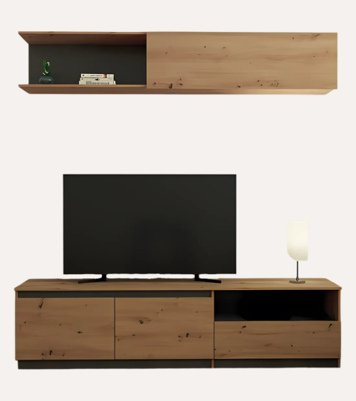 Composición de salón económica de 200 cm de ancho. Compuesta por un mueble de televisión, un módulo alto y un estante. Ideal para salones de...