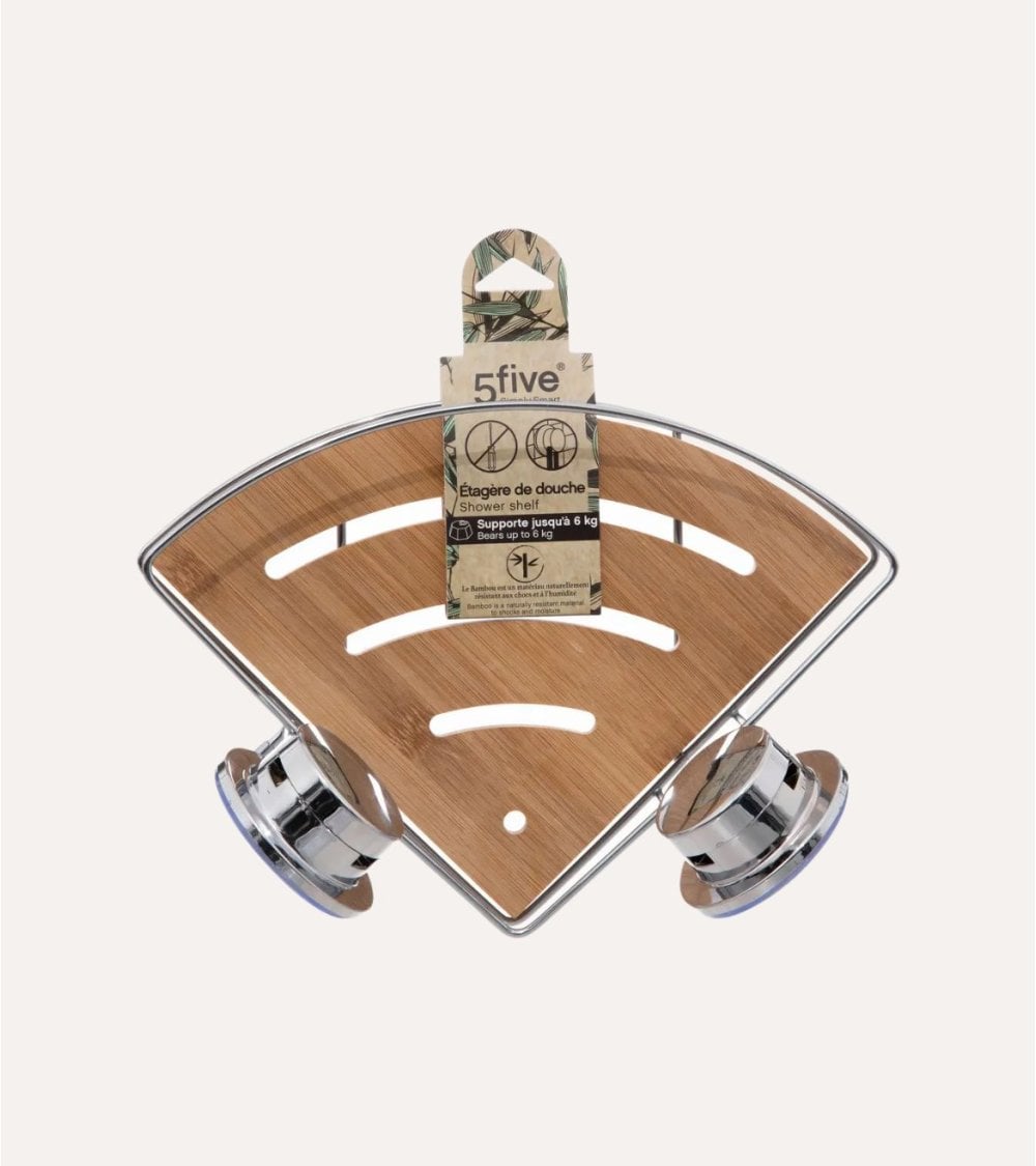 Diseñado especialmente para aprovechar las esquinas de tu ducha, este estante triangular es ideal para baños pequeños o espacios donde cada centímetro cuenta. Su superficie de bambú presenta un acabado suave con vetas naturales y líneas sutiles que facilitan el drenaje del agua, evitando que los productos se resbalen o acumulen humedad. Además, su estructura metálica cromada garantiza durabilidad y resistencia a la corrosión, manteniendo su brillo incluso en ambientes húmedos.