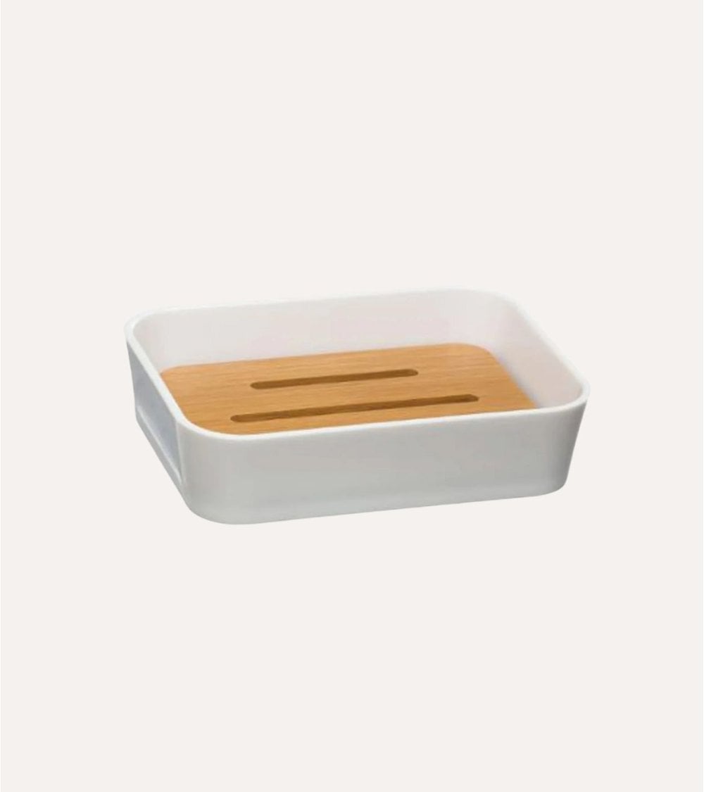 El set de baño de 2 piezas Natureo incluye un vaso cilíndrico y una jabonera. El vaso, con acabado mate, es ideal para organizar cepillos de dientes, lápices o pequeños utensilios. La jabonera rectangular tiene una base con inserto de bambú y ranuras funcionales para mantener el jabón seco y prolongar su vida útil. El contraste visual entre el acabado mate y los detalles naturales del bambú aporta calidez al ambiente. Hecho de poliestireno resistente con detalles en bambú natural. Tamaño del vaso: 7,3 x 7,3 x 11,6 cm. Tamaño de la jabonera: 11,8 x 8,8 x 2,8 cm.