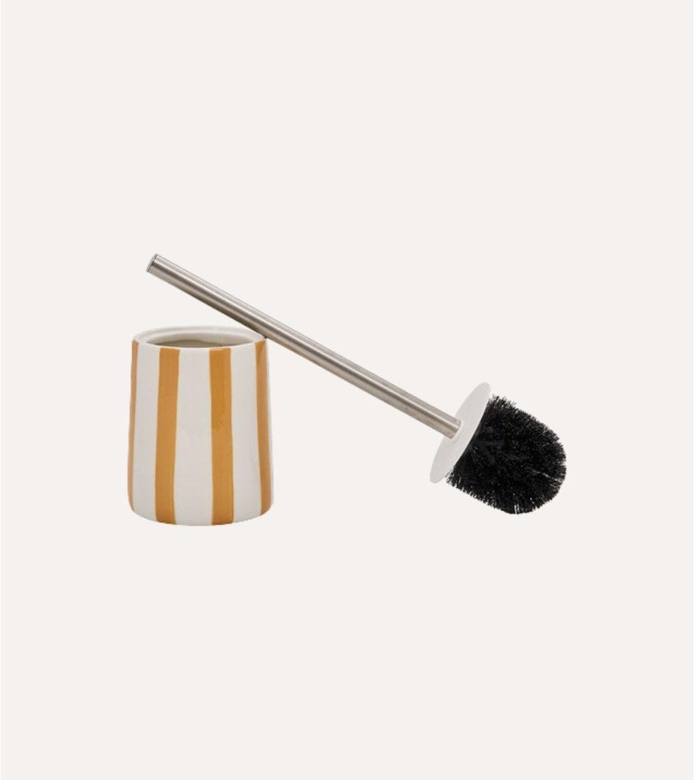 La Escobilla de Baño Strio de Dolomita combina funcionalidad y estética con su diseño cilíndrico ligeramente cónico. Su mango metálico recto proporciona una sujeción cómoda y duradera, facilitando la limpieza diaria del inodoro. Disponible en Rosa, Amarillo y Verde, permite coordinar los accesorios de baño con el resto de la decoración. Sus medidas son 10.8 x 10.8 x 39 cm y está fabricada en dolomita resistente, ideal para un uso diario prolongado. Su diseño moderno y acabado a rayas aportan un toque decorativo sutil a cualquier baño.
