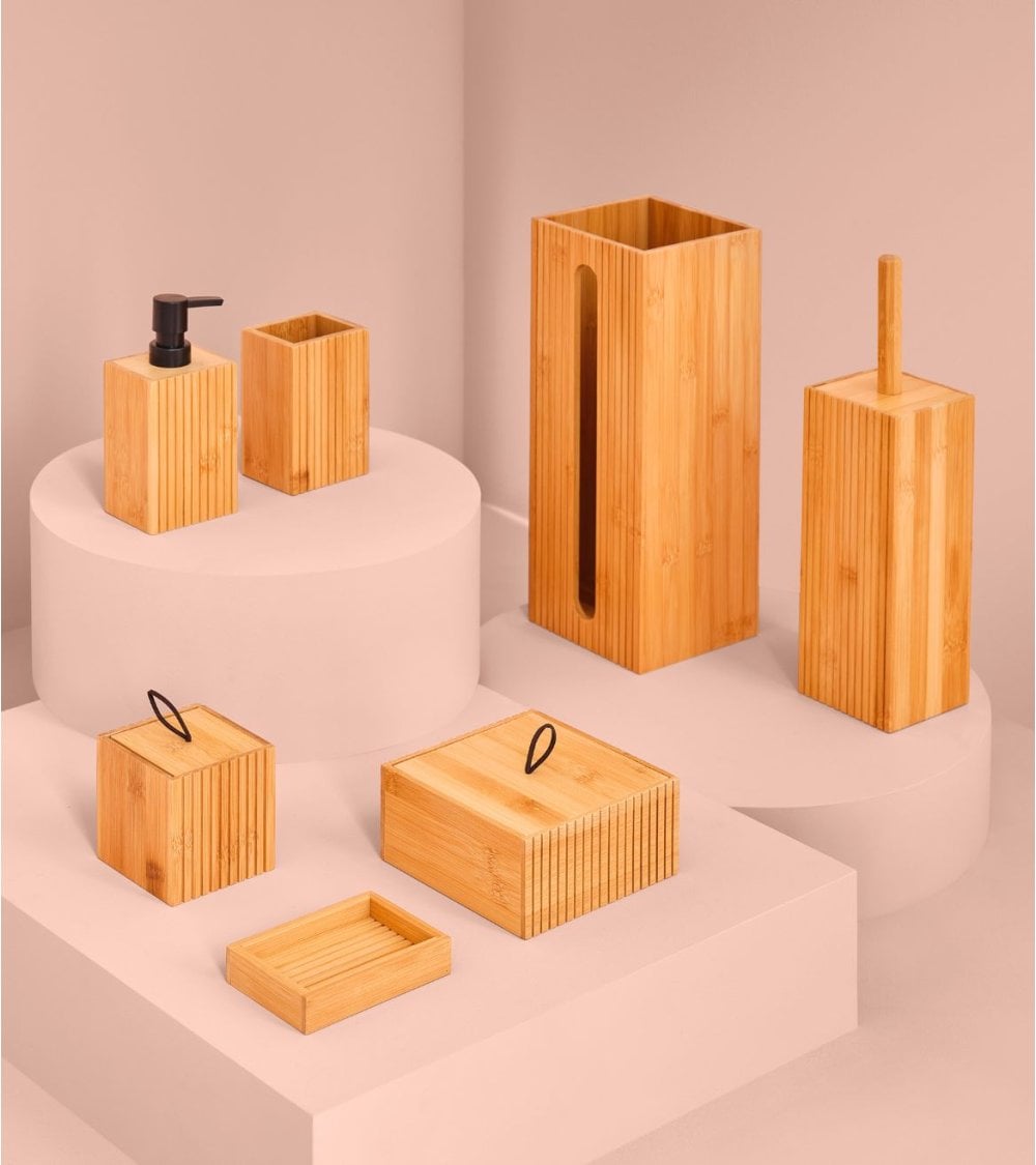 El Portarrollos de Baño Terre de Bambú es parte de la Colección Terre, una línea de artículos de baño de bambú que combina la belleza natural del bambú con la funcionalidad y el diseño moderno. Este portarollos no solo es práctico, sino que también es una pieza decorativa que añade un toque de estilo y elegancia a su baño.