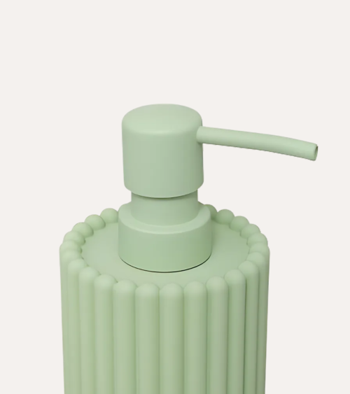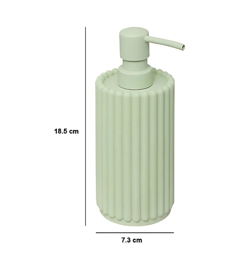 Fabricado completamente en resina, este dispensador es altamente duradero y resistente al desgaste, lo que lo hace ideal para el uso diario en entornos húmedos como baños y cocinas. Su color verde pastel suave crea una apariencia fresca y relajante que se adapta perfectamente a diversos estilos decorativos.