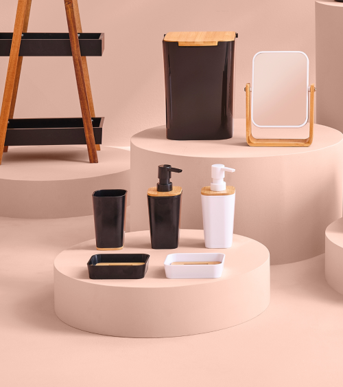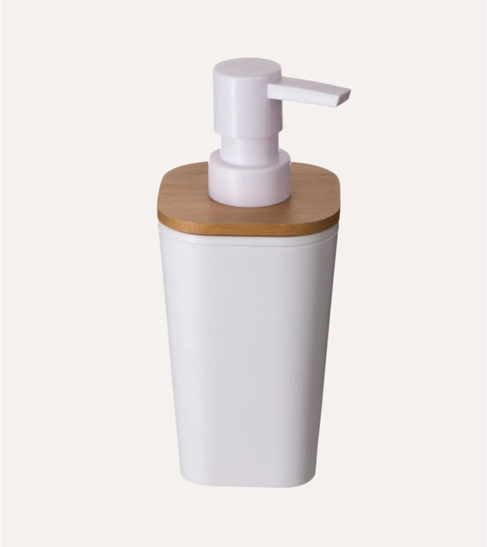 Materiales: El dispensador está fabricado con una base de plástico duradero y un tapón de bambú que no solo aporta calidez, sino que también es respetuoso con el medio ambiente. Su diseño moderno y minimalista lo convierte en una opción ideal para quienes buscan accesorios prácticos sin sacrificar la estética.