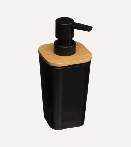Materiales: El dispensador está fabricado con una base de plástico duradero y un tapón de bambú que no solo aporta calidez, sino que también es respetuoso con el medio ambiente. Su diseño moderno y minimalista lo convierte en una opción ideal para quienes buscan accesorios prácticos sin sacrificar la estética.