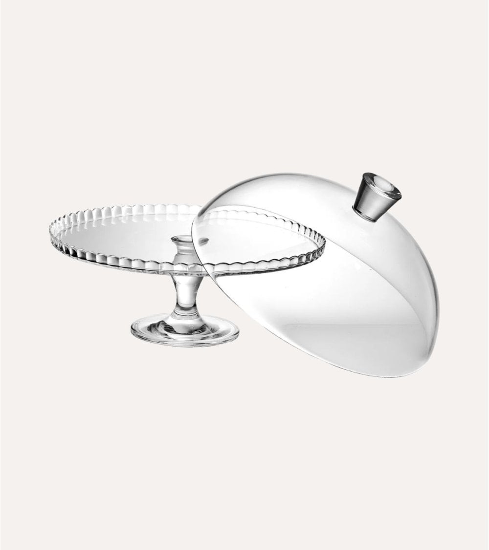 En ALI Hogar, descubre el expositor de tartas con tapa Lara de cristal, esencial para presentar postres con elegancia y funcionalidad. Diseñado para proteger y exhibir tus tartas favoritas, manteniéndolas frescas y realzando su belleza. Fabricado en cristal transparente, permite apreciar cada detalle del pastel sin retirarlo. Su acabado pulido aporta sofisticación, adaptándose a cualquier decoración. Incluye una base redonda con borde acanalado y tapa abovedada con asa superior para facilitar su manipulación. Tamaño de 32,2 x 26,2 cm.