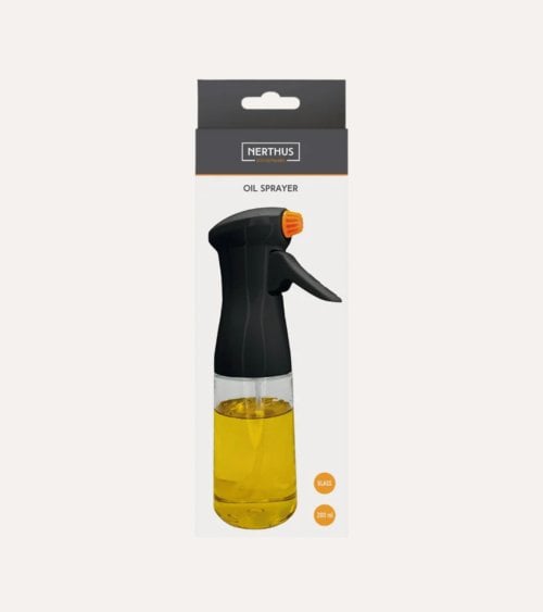 Este pulverizador es perfecto para quienes buscan una herramienta versátil dentro del mundo culinario, facilitando la distribución uniforme del aceite sobre alimentos o utensilios sin desperdicios ni exceso. Además, su estética moderna en negro con detalles naranjas aporta estilo a cualquier cocina contemporánea.