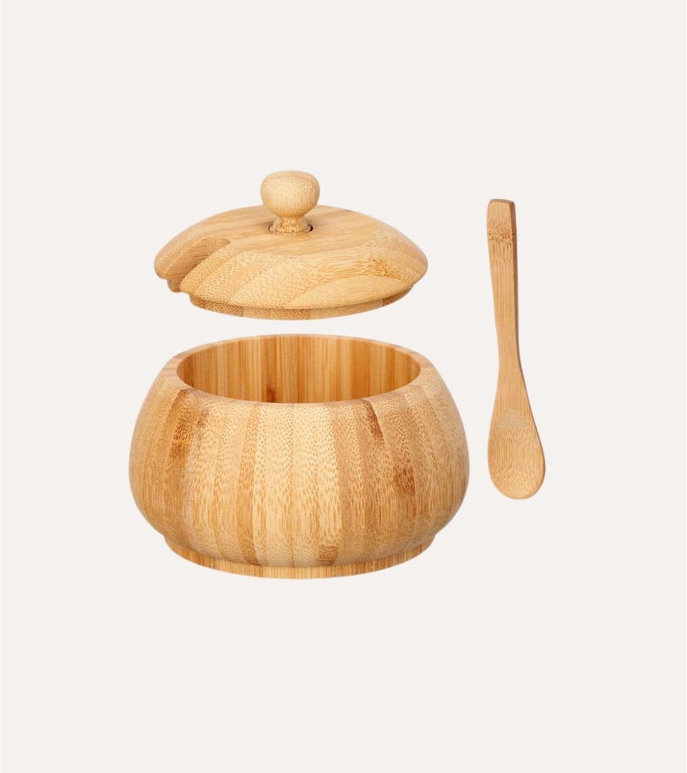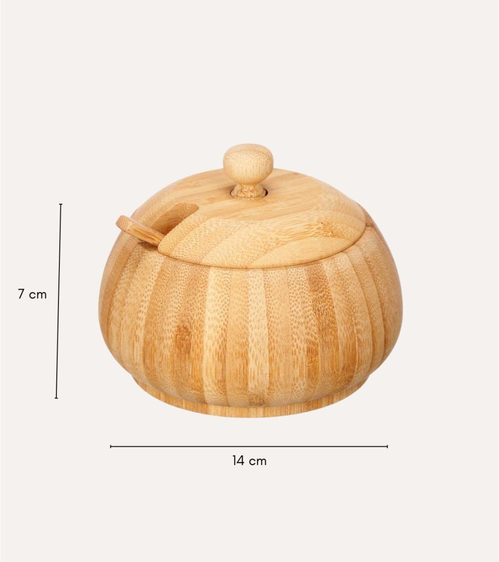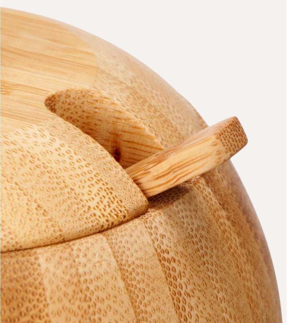 Azucarero Redondo con Tapa y Cuchara de Bambú