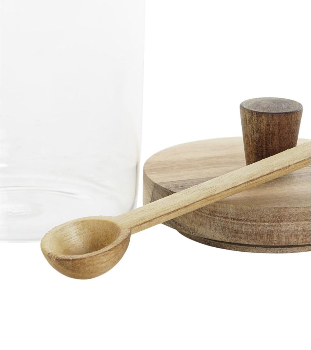 Bote de Vidrio con Tapa y Cuchara de Madera de Acacia