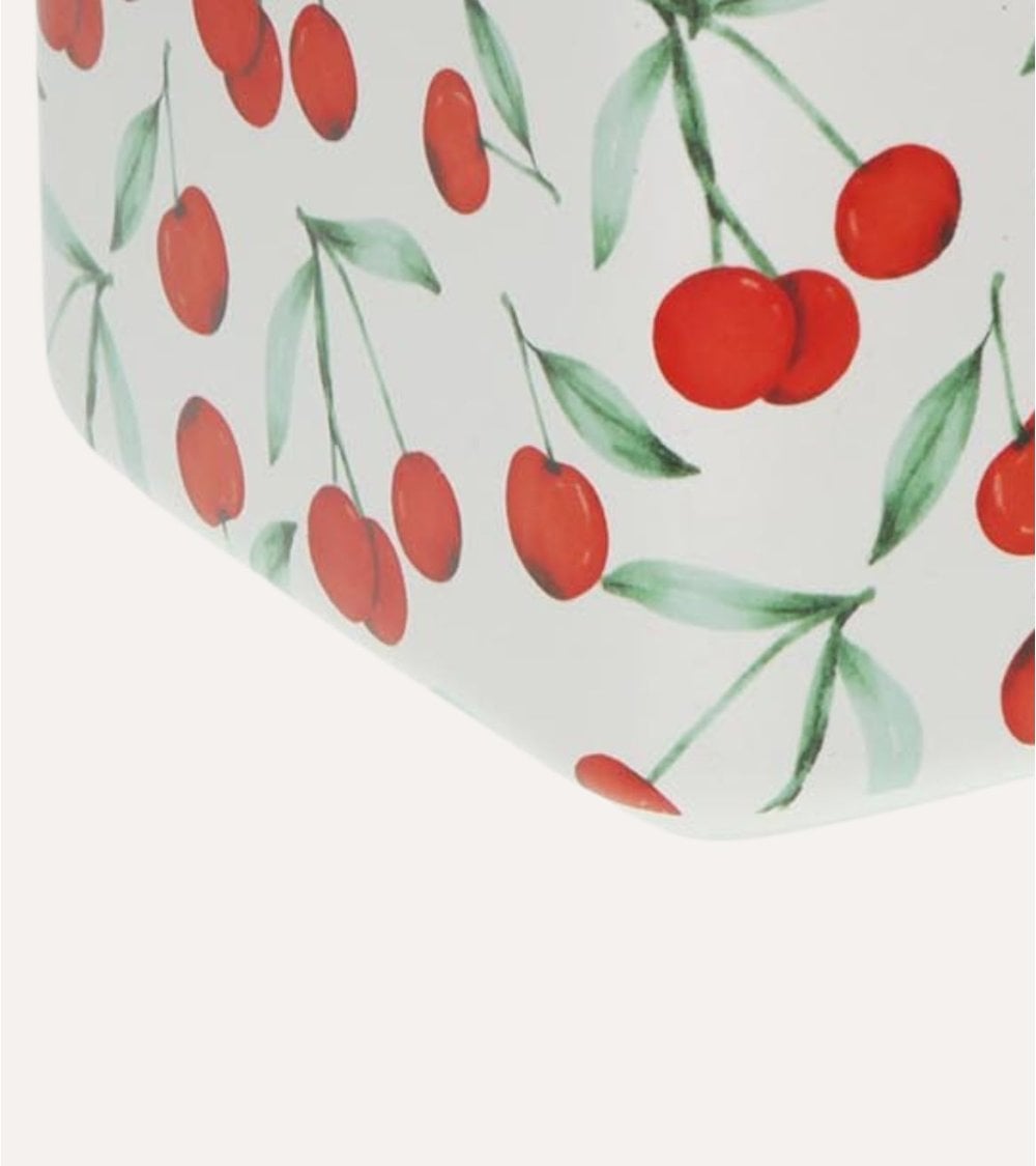 - Decoración de cerezas en tonos rojos y verdes que aporta un toque divertido y decorativo a la cocina.
