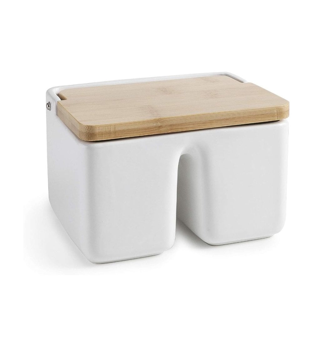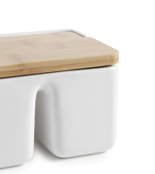 Salero Doble de Ceramica y Bambu, Ideal para Cocina y Comedor Elegante