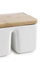 • Hecho de Cerámica y Bambú: Este salero doble está hecho de cerámica de alta calidad y bambú duradero, lo que garantiza su durabilidad y longevidad.