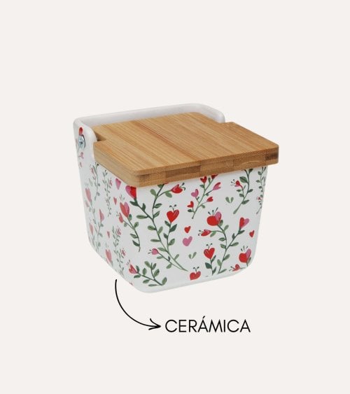 Con dimensiones que se adaptan cómodamente a cualquier encimera, el Salero Lover de Cerámica está diseñado para un fácil acceso mientras cocinas o sazonas tus platos favoritos. Su forma compacta y cuadrada asegura que no ocupará demasiado espacio, pero sigue siendo una pieza llamativa en tu cocina.