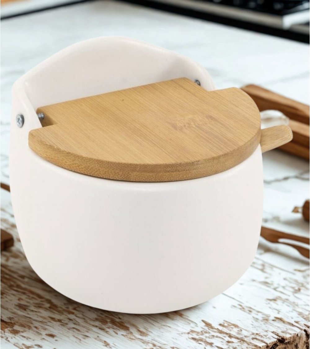Descubre el Azucarero con Tapa de Bambú, una pieza que combina funcionalidad y estilo, ideal para cualquier cocina o comedor. Este elegante azucarero no solo es práctico, sino que también añade un toque moderno a tu mesa.