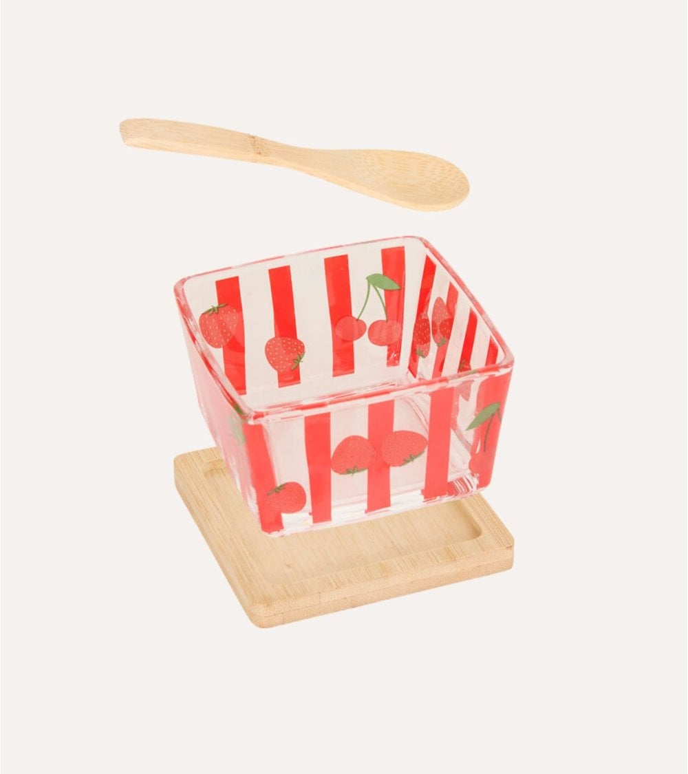 Set de Cuenco de Aperitivo Fruity con Cuchara y Base de Bambú