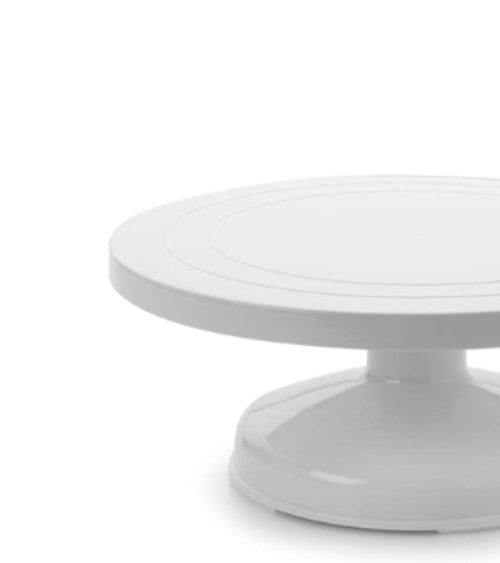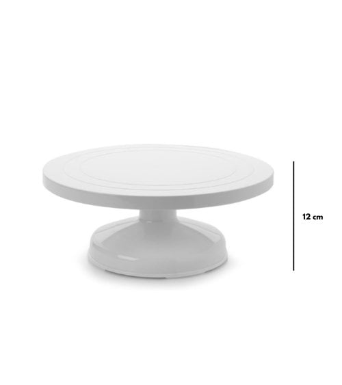 - Dimensiones: Con un diámetro de 12,5 cm, esta base giratoria es perfecta para pasteles de todos los tamaños.