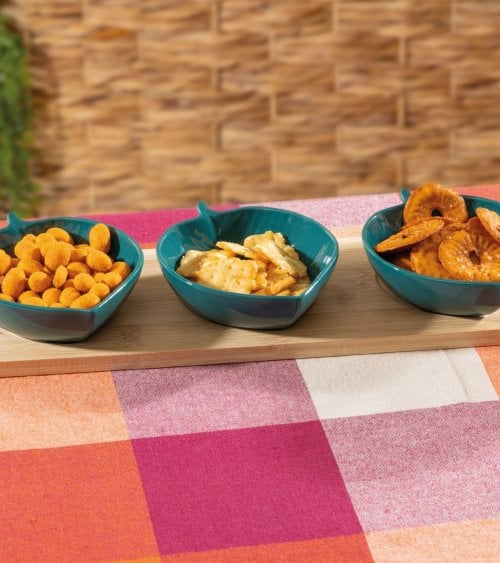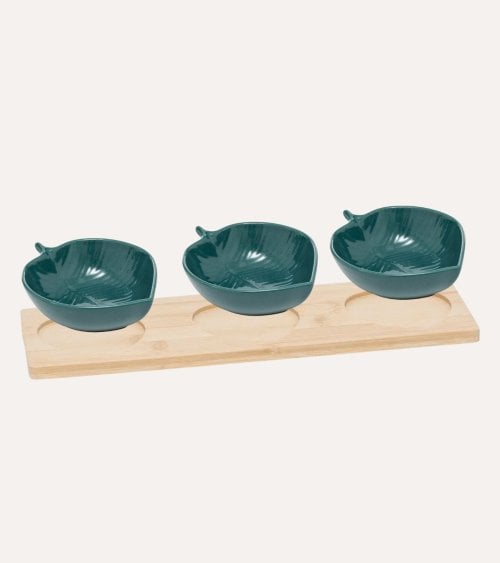 Set de 3 Mini Bandejas de Hojas Azules para Aperitivos