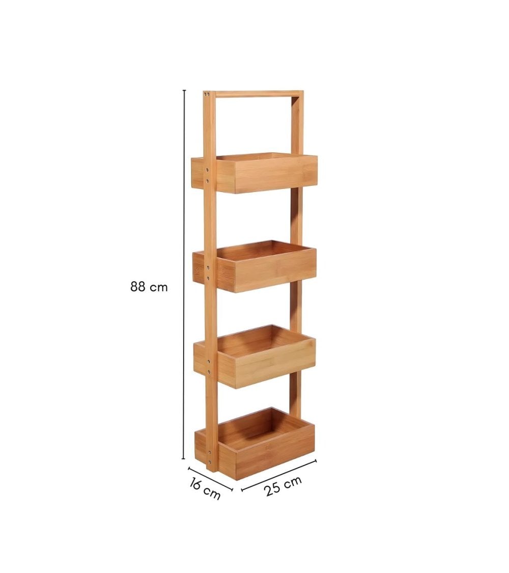 Estantería de Bambú Estrecha de 4 Niveles