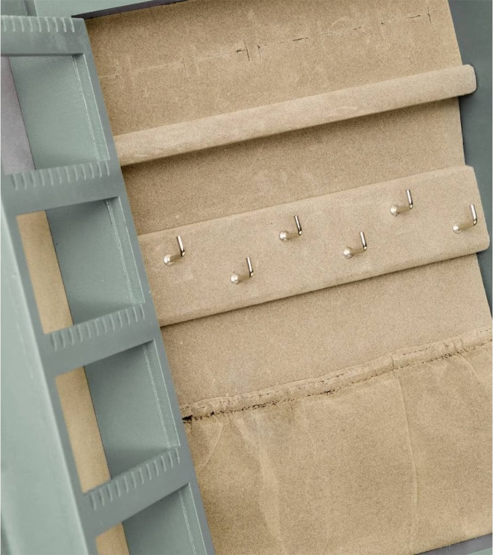 El Espejo Joyero de Mesa Chéri de MDF se adapta a distintas decoraciones, desde ambientes minimalistas hasta estilos más románticos o vintage. Su acabado en MDF de calidad ofrece una superficie uniforme y fácil de limpiar, ideal para un uso diario en el hogar. Además, su tamaño compacto permite colocarlo sobre cómodas, mesas auxiliares o escritorios sin ocupar demasiado espacio, aportando organización y estilo en un solo gesto.