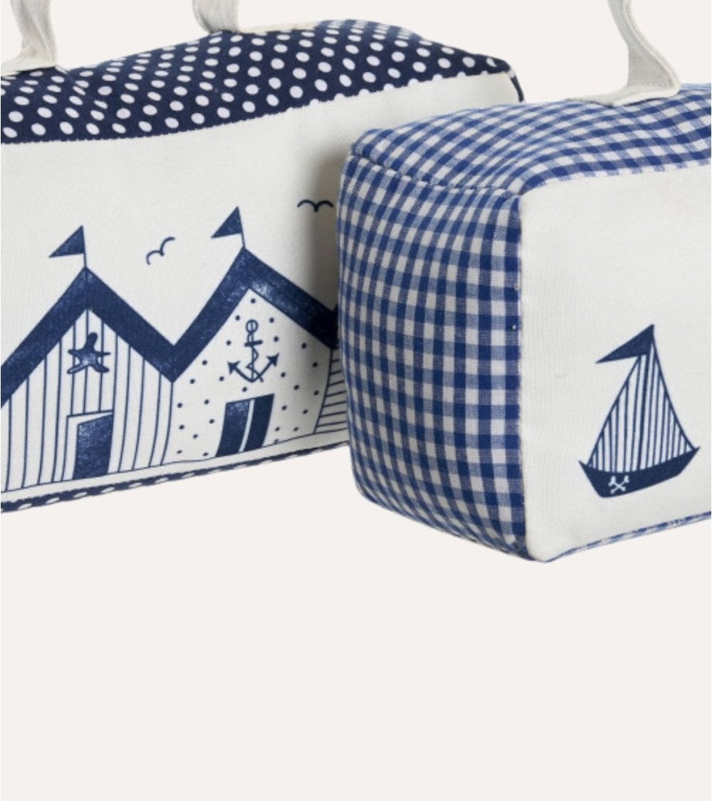 Fabricado en poliéster resistente, este tope de puerta ofrece una combinación ideal de durabilidad y ligereza, facilitando su traslado gracias a su asa superior de tela. Su forma rectangular proporciona una base estable, capaz de soportar el movimiento de puertas interiores habituales, a la vez que protege suelos y marcos frente a impactos. Es perfecto para viviendas con estilo náutico, apartamentos en la costa o para quienes desean dar un toque veraniego durante todo el año.