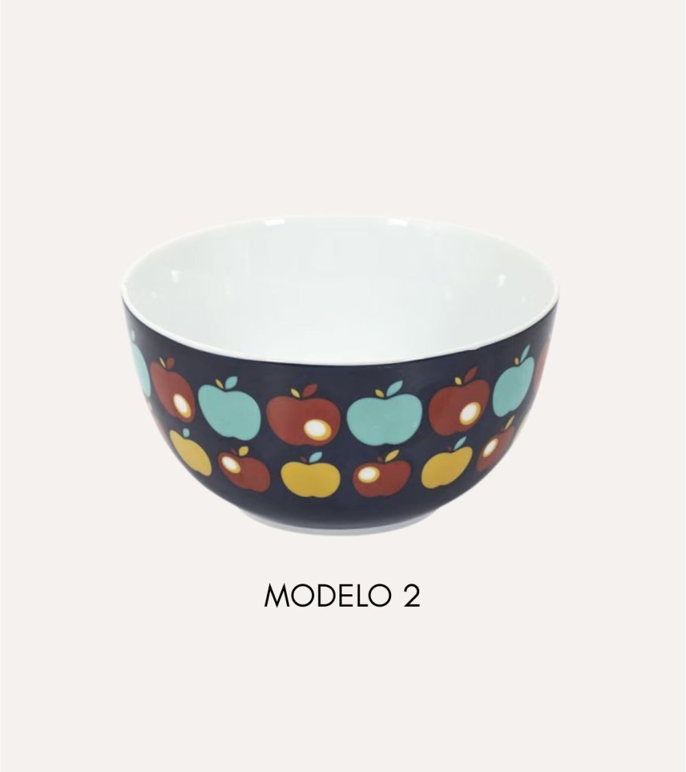 - Base azul oscuro: decorado con manzanas estilizadas en rojo, verde y amarillo que aportan un aire divertido y vibrante.