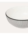 - Diseño: Exterior con líneas negras verticales y borde negro que enmarca elegantemente el bol.