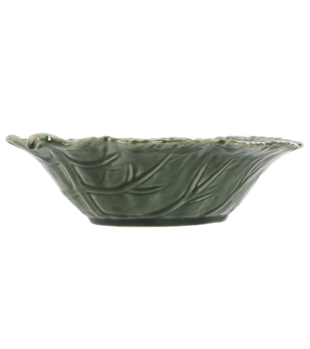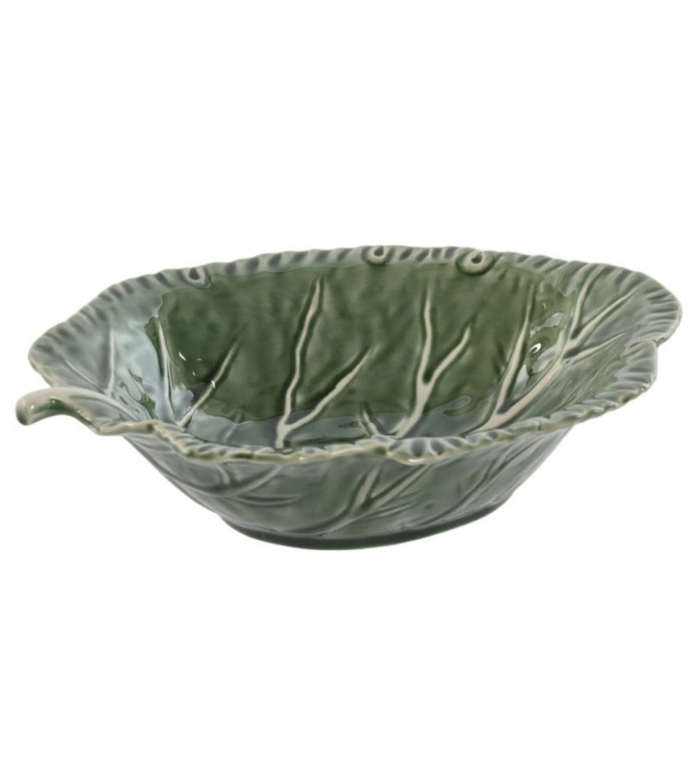 La Ensaladera de Repollo Verde Gres, con medidas de 27,5 x 23 x 7 cm, presenta una forma única de hoja de lechuga. Esta pieza es perfecta para servir ensaladas, frutas y otros platos, aportando un toque de estilo a tu mesa. Fabricada con un material resistente, garantiza una larga durabilidad. Es ideal tanto para uso diario como para ocasiones especiales.