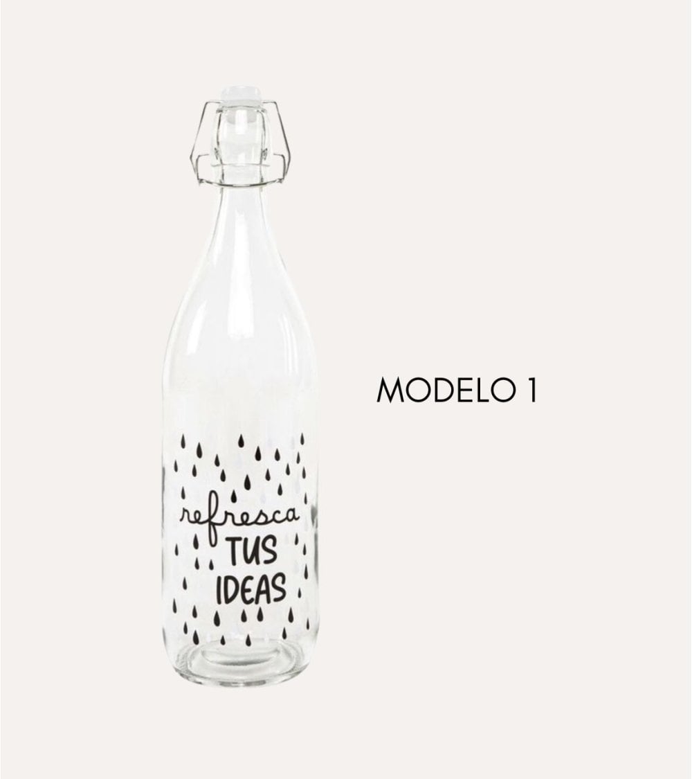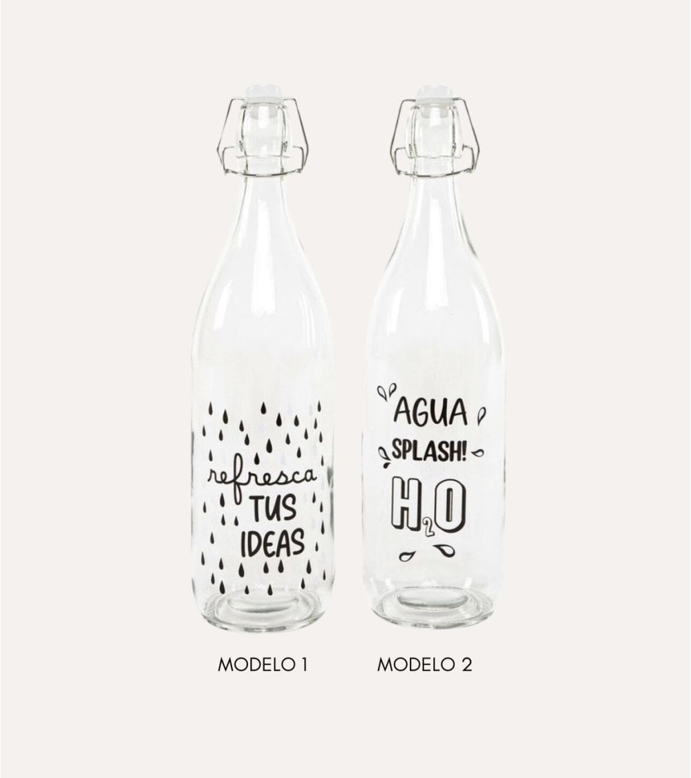 - Disponible en dos modelos con frases escritas en negro sobre la botella transparente, para añadir un toque personal a tu botella.