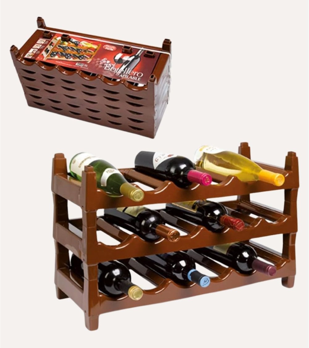 Este botellero destaca por su estructura apilable de tres niveles que permite maximizar el uso del espacio vertical. Su color canela, un tono marrón cálido y natural, aporta un toque acogedor que complementa diversos estilos decorativos. Además, su acabado brillante y superficie lisa facilitan la limpieza y mantenimiento diario.