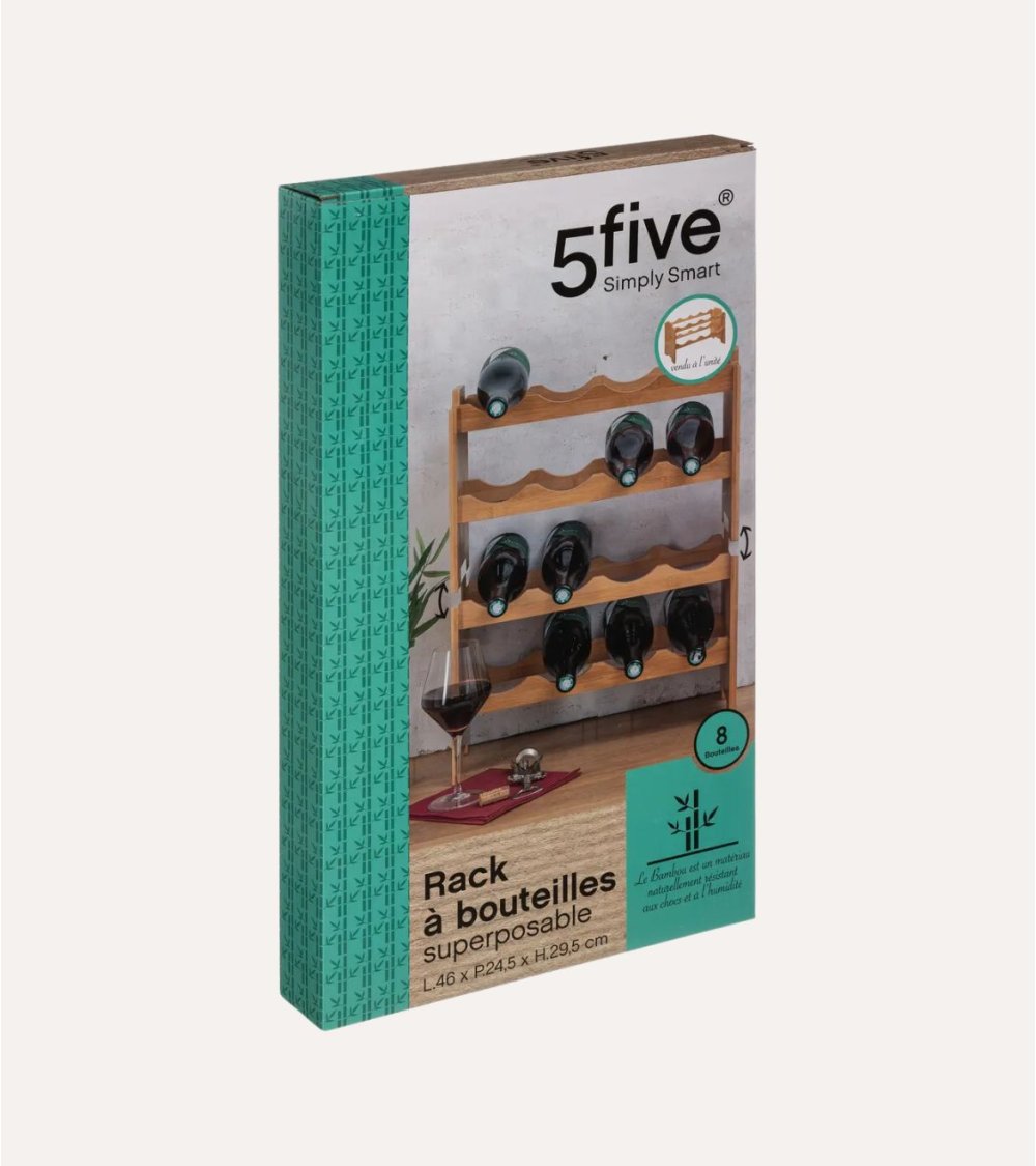 - Capacidad: Almacena hasta ocho botellas de vino, aceite u otros recipientes similares.