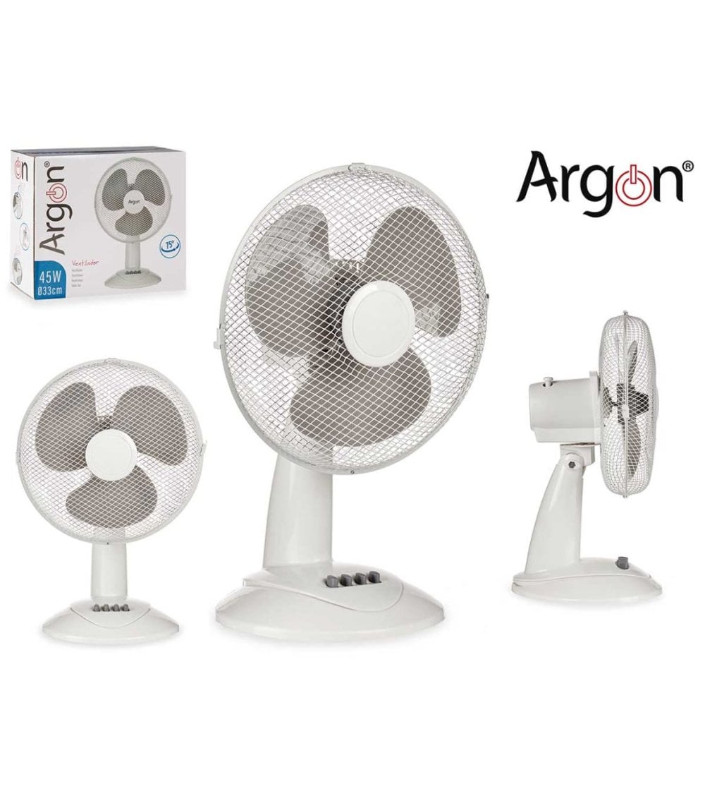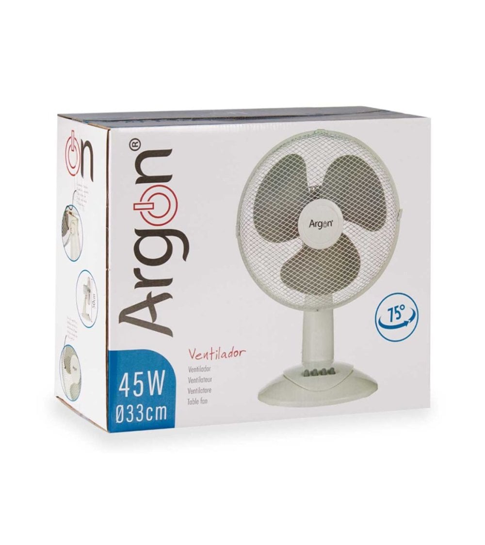 Económico ventilador de sobremesa en blanco. Práctico y eficiente, este ventilador de 45W es perfecto para el verano y las altas temperaturas. Se trata de un electrodoméstico de calidad, fabricado con polipropileno. La longitud del cable es de 1,3 metros.