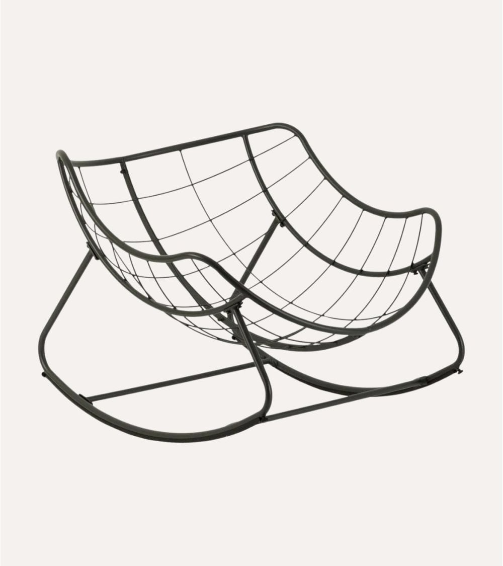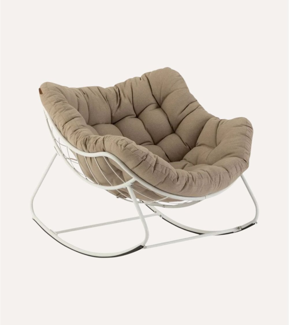 Mecedora Paopao de Acero y Poliéster es parte de la colección Cozy Otoño, diseñada especialmente para crear ambientes cálidos y relajantes en tu hogar. Su base semicircular permite un movimiento suave de balanceo, ideal para momentos de lectura, descanso o simplemente disfrutar del tiempo libre.