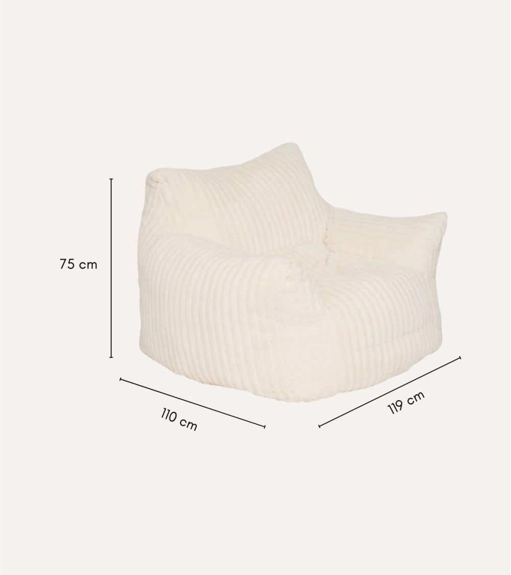 Su color neutro en tonos crema permite integrarlo fácilmente en salones, dormitorios o espacios de lectura, aportando luminosidad y calidez sin saturar el ambiente. Además, su tamaño compacto pero espacioso —con dimensiones de 119 x 110 x 75 cm — lo hace perfecto para uso individual sin sacrificar confort.