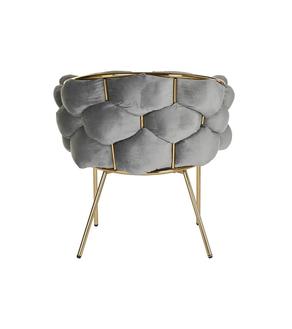 Sofisticado sillón de terciopelo con estructura metálica en color dorado. Cuenta con un original acabado entrelazado de nudos.