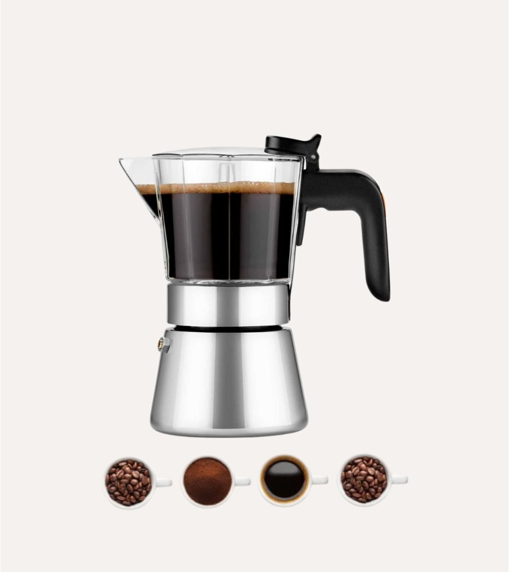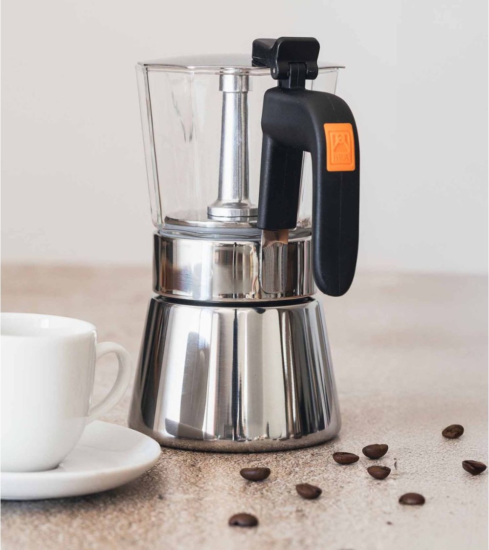 Cafetera Italiana Inducción Flavour Crystal de Acero Inoxidable