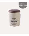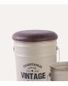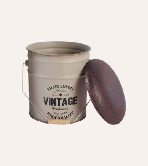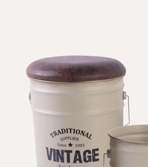 Este puff baúl destaca por su estructura metálica robusta con un acabado envejecido que aporta ese encanto clásico y acogedor, perfecto para ambientes con decoración rústica, farmhouse o retro. Su diseño cilíndrico ofrece un amplio espacio interior para almacenamiento, permitiéndote mantener el orden en salas, dormitorios o incluso en zonas de trabajo.