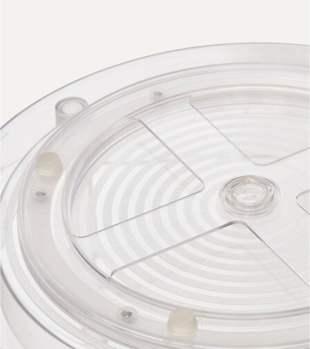 La transparencia del acrílico no solo aporta un toque sofisticado sino que también facilita la visualización inmediata del contenido, ayudándote a encontrar lo que necesitas en segundos. Además, las superficies cuentan con un patrón circular acanalado que evita que los objetos se deslicen, brindando mayor seguridad y estabilidad.