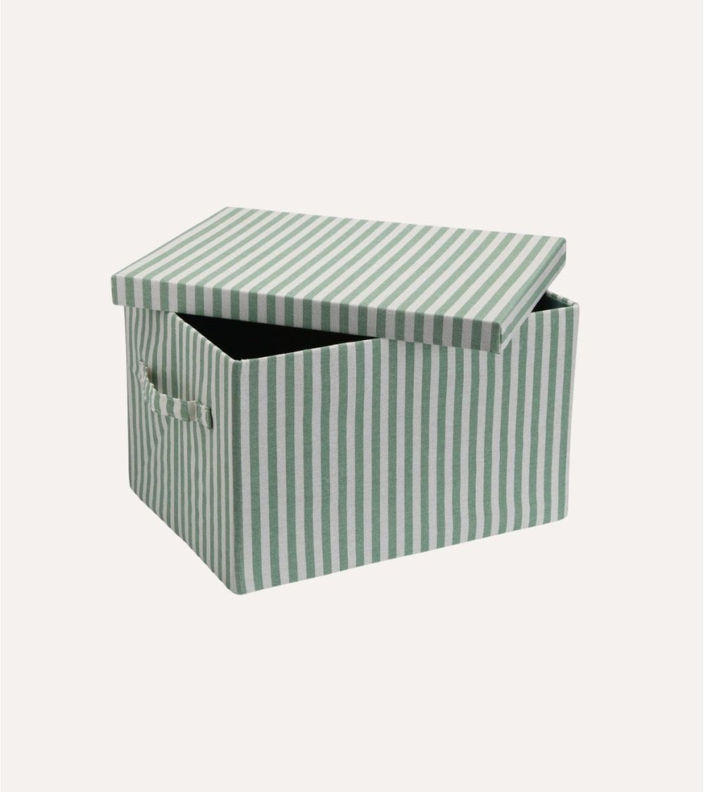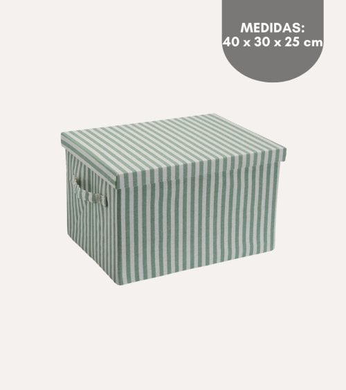 Cesta A Rayas con Tapa de Algodón y Poliéster