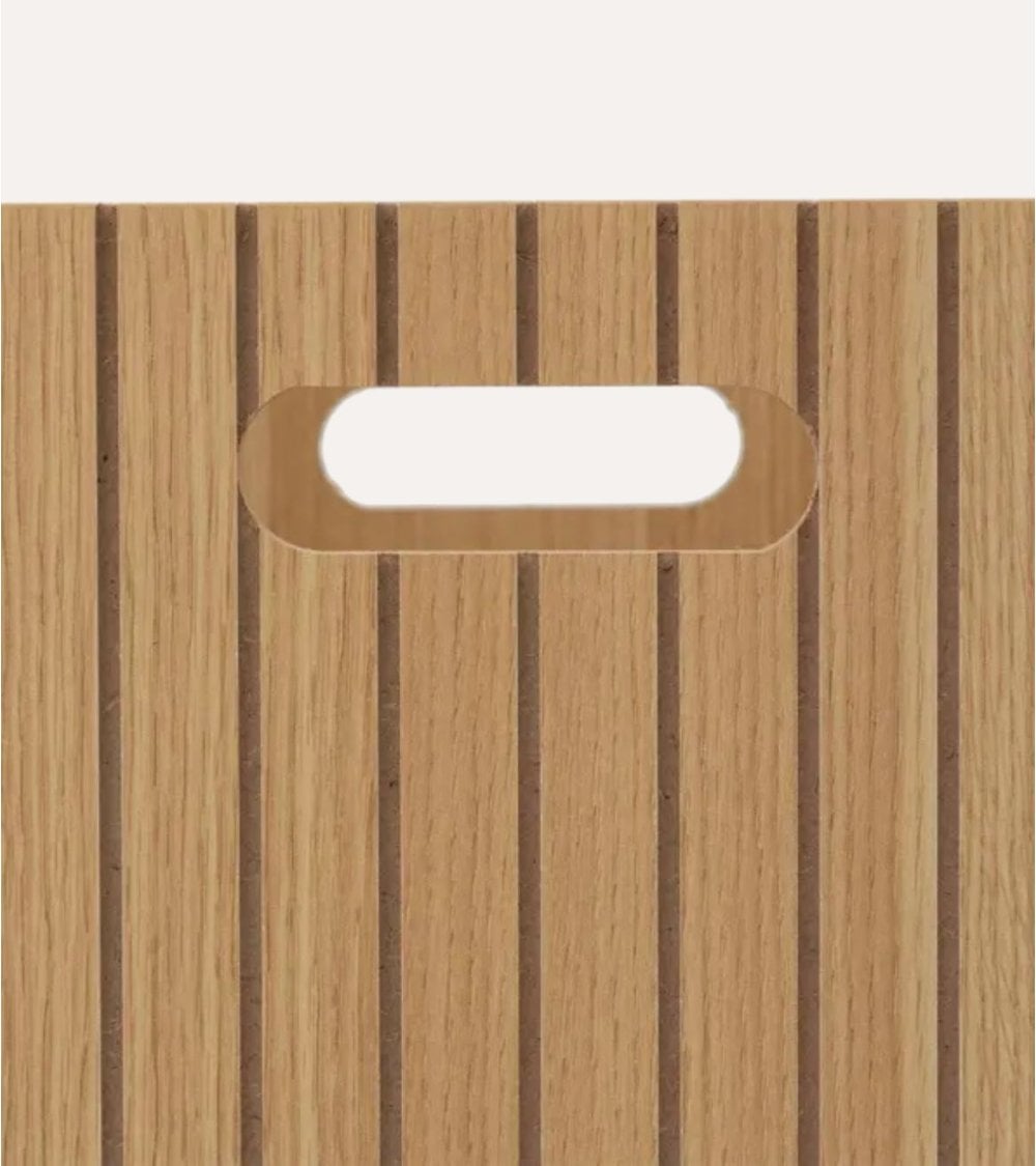 Gracias a sus líneas rectas y a los listones verticales decorativos, esta cesta encaja a la perfección en salones, dormitorios, recibidores, oficinas o cuartos infantiles. Las prácticas asas troqueladas en los laterales permiten transportarla cómodamente, incluso cuando está llena, lo que la convierte en un complemento ideal para el uso diario.