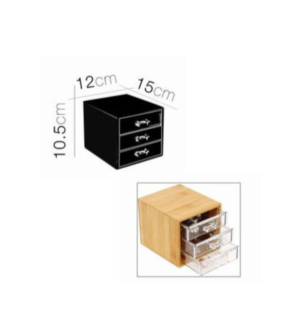 Este organizador de bambú compacto de 12x15x10,5 cm es perfecto para almacenar tus objetos pequeños. Su diseño elegante y natural se adapta a cualquier decoración. Es resistente, duradero y fácil de limpiar. Ideal para mantener ordenado tu escritorio, cocina o baño.