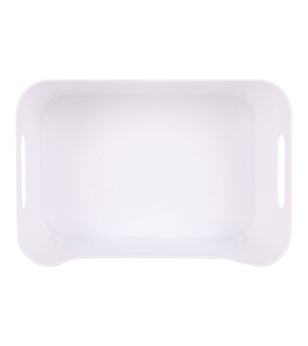 Esta cesta de plástico multiusos con asas es perfecta para organizar y almacenar diversos artículos en su hogar. Su diseño robusto y duradero garantiza un uso prolongado. Las asas incorporadas facilitan su transporte. Ideal para la cocina, el baño, la oficina o cualquier espacio que necesite orden. Un accesorio esencial para mantener su espacio limpio y ordenado. Disponible en varios tamaños.