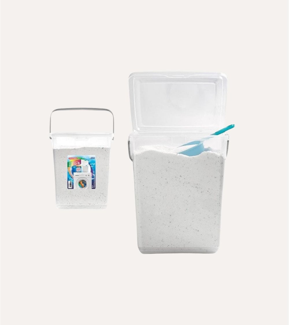 El Cubo con Asas Guarda Detergente de Plástico es un elemento esencial para mantener organizado y limpio tu espacio de lavado. Este cubo de plástico transparente con asa y tapa es perfecto para almacenar cualquier tipo de detergente en pastillas o polvo. Su diseño práctico y funcional te permitirá tener siempre a mano tus productos de limpieza, evitando derrames y manteniendo el orden en tu hogar.