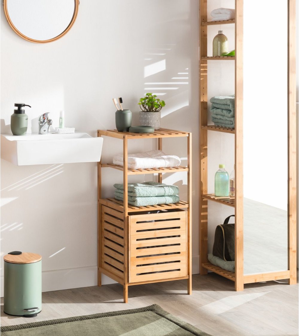 Esta cesta para almacenamiento de bambú es perfecta para organizar tus espacios. Con medidas de 31 x 31 x 31 cm, es lo suficientemente amplia para guardar diversos objetos. Su diseño con rejillas permite una excelente ventilación, manteniendo tus pertenencias frescas y secas. Esta caja de almacenamiento es un complemento ideal para cualquier hogar.