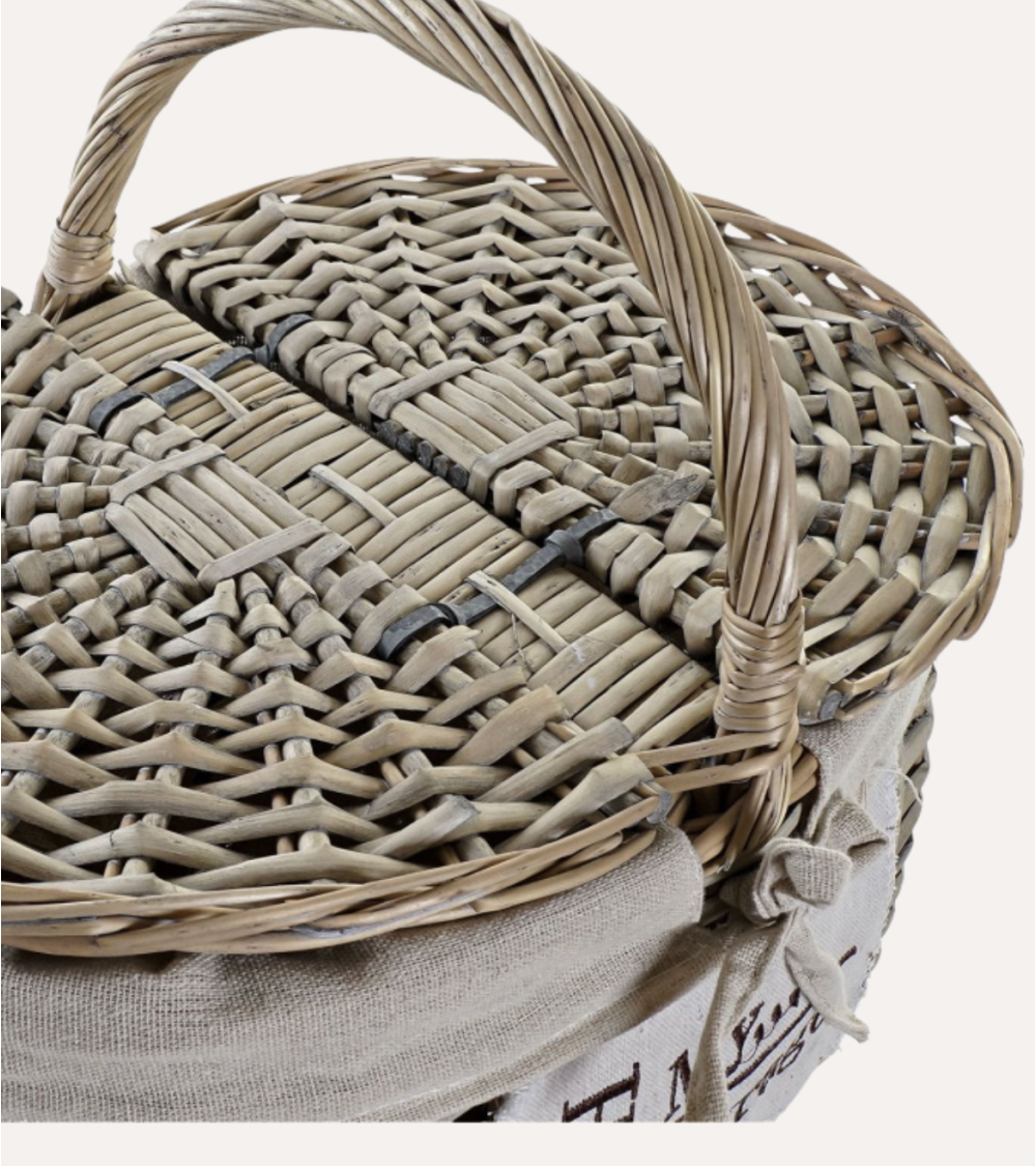 Con una estructura ovalada y un tamaño de 34 x 25 x 35 cm, esta cesta es lo suficientemente espaciosa para llevar una selección deliciosa de alimentos y bebidas. Su asa tejida permite un transporte cómodo, mientras que la tapa ajustada asegura que todo permanezca seguro durante el viaje.