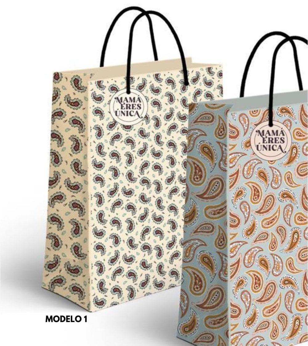 Bolsa de papel estampado Paisley, un regalo perfecto para mamá. Esta bolsa de alta calidad, con su diseño elegante y sofisticado, es ideal para cualquier ocasión. Su estampado Paisley le da un toque de estilo y originalidad. Es resistente, reutilizable y ecológica. Perfecta para hacer compras, llevar al trabajo o simplemente para un día de paseo. Sorprende a tu mamá con este regalo práctico y chic.